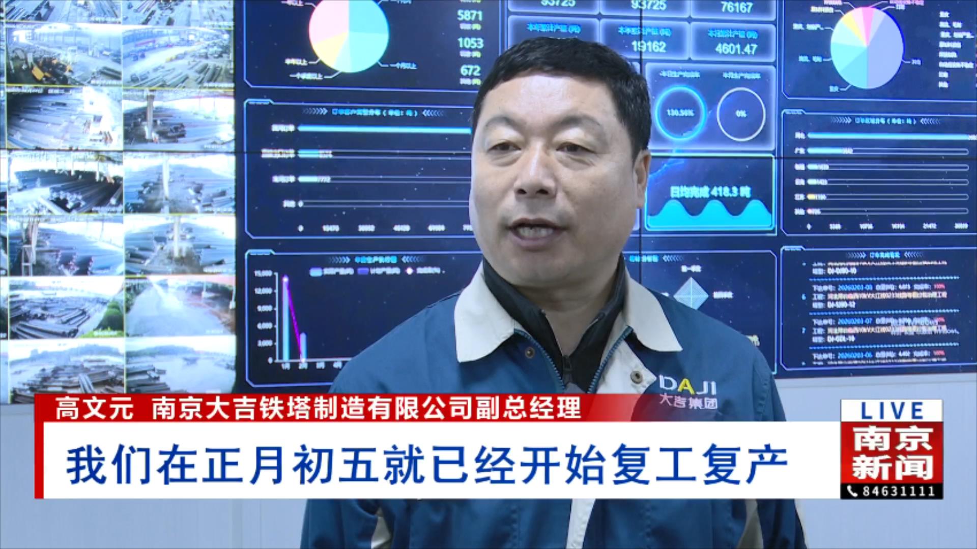 南京大吉鐵塔制造有限公司副總經理高文元表示:“我們在正月初五就已經開始復工復產,目前生產線已全部開工,復工率已達96%?!?/p>